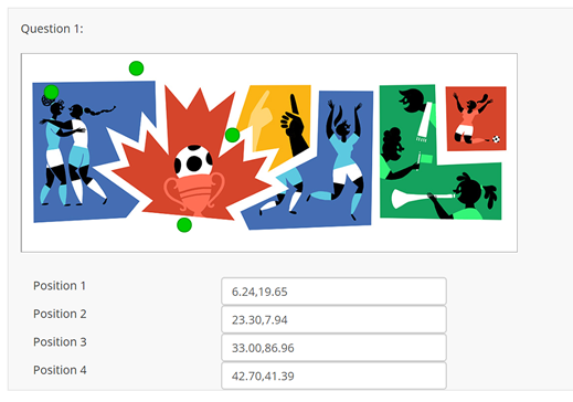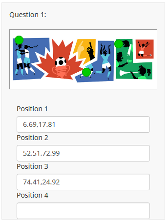<div class="image-wrapper" style="border:2px solid #999; width: 600px;"> <img src="https://asdfresearch.com.au/images/GRID.jpg" style="border:0 none; width: 100%; height: auto;" /></div> <script type="text/javascript" charset="utf-8"> $(document).ready(function() { // Identify this question var thisQuestion = $('#question{QID}'); // Hide the text input - uncomment below //$('input.text', thisQuestion).hide(); // Create the click "marker" $('.image-wrapper', thisQuestion).append('<div class="click-marker" />'); var leftVal = 0; var topVal = 0; var displayVal = 'none'; if($.trim($('input.text', thisQuestion).val()) != '') { leftVal = $.trim($('input.text', thisQuestion).val()).split(',')[0]+'%'; topVal = $.trim($('input.text', thisQuestion).val()).split(',')[1]+'%'; displayVal = 'block'; } $('.click-marker', thisQuestion).css({ 'display': displayVal, 'position': 'absolute', 'left': leftVal, 'top': topVal, 'margin': '-10px 0 0 -10px', 'width': '18px', 'height': '18px', '-moz-border-radius': '10px', '-webkit-border-radius': '10px', 'border-radius': '10px', 'background': '#0C0', 'border': '1px solid #090' }); // Insert an overlay to click on $('.image-wrapper', thisQuestion).css('position', 'relative').append('<div class="click-overlay" />'); $('.click-overlay', thisQuestion).css({ 'position': 'absolute', 'left': 0, 'top': 0, 'margin': 0, 'width': $('.image-wrapper', thisQuestion).width()+'px', 'height': $('.image-wrapper', thisQuestion).height()+'px' }); // Click event on the overlay $('.click-overlay', thisQuestion).click(function(e) { var thisWidth = $(this).width(); var thisHeight = $(this).height(); var posX = $(this).offset().left; var posY = $(this).offset().top; var xCoord = e.pageX - posX; var yCoord = e.pageY - posY; var xCoordPercent = (xCoord/thisWidth)*100; var yCoordPercent = (yCoord/thisHeight)*100; // Load the click coordinates (as relative percentages) $('input.text', thisQuestion).val(xCoordPercent.toFixed(2)+','+yCoordPercent.toFixed(2)); // Reposition the marker $('.click-marker', thisQuestion).css({ 'display': 'block', 'left': xCoordPercent+'%', 'top': yCoordPercent+'%' }); }); }); </script>