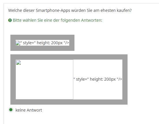 Thanks a million! I got it now. Thanks! As I can't really change the image size though, I know did a normal single-choice question and instead of entering the answer, I inserted the link to the image. Works perfectly!