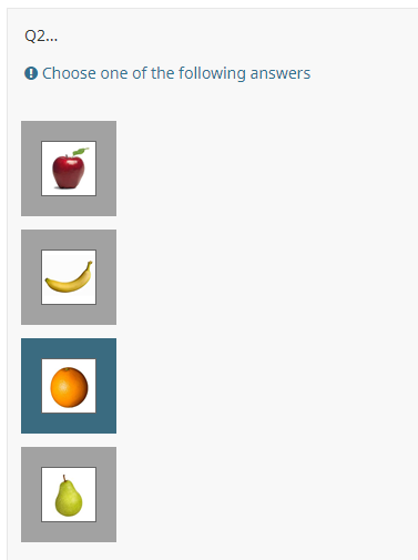 I created a Radio List question, so that the answer options are a few pictures of which the participant can choose one as an answer.