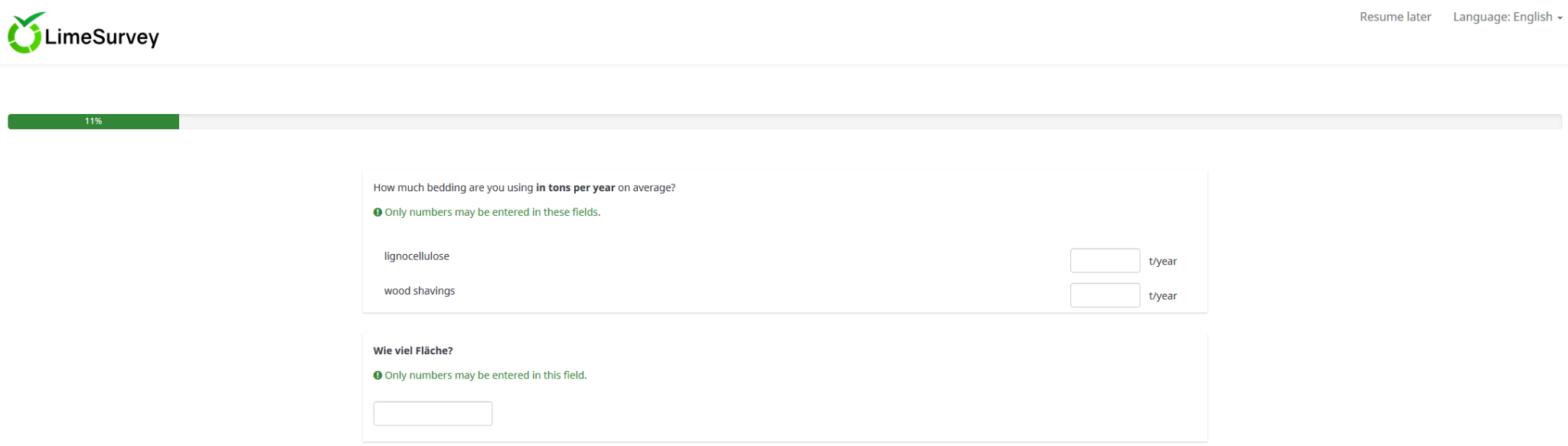Whereas in LimeSurvey 3.14 with the theme "fruity" and the question type "multiple numerical input" the input box is right-justified. But in the question type "numerical input", the input box is left-justified. See second screenshot (first two questions are multiple numerical input and the last question is numerical input).