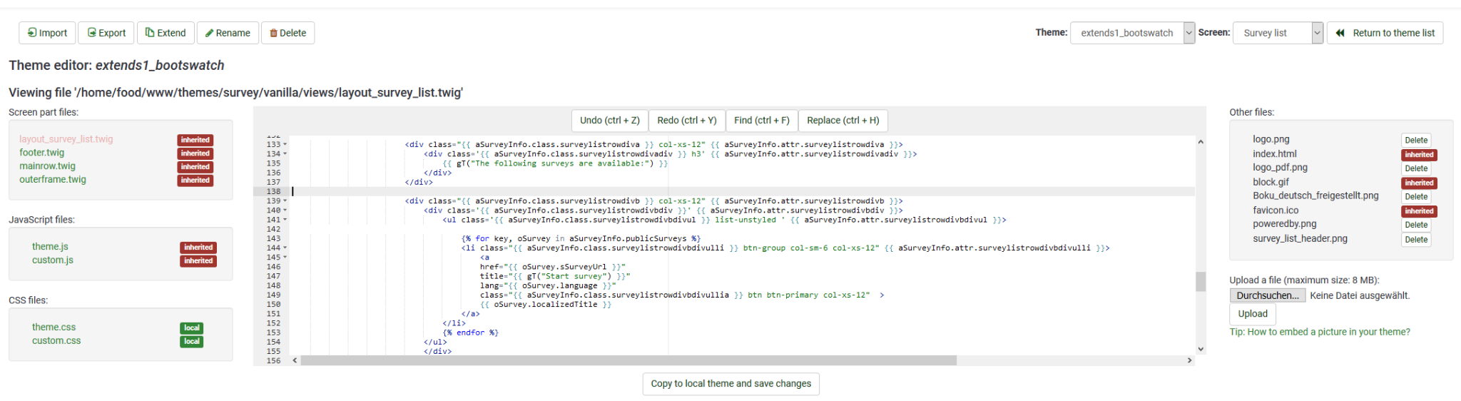 how can I change the logo of the homepage where all surveys are listed publicly? I would like to replace the existing logos with the logo of my institution. See screenshot.