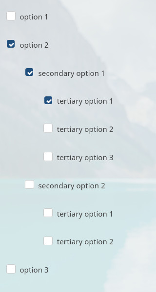 .with-dependants .child-item { display: none; } .with-dependants li.level-2 { margin-left: 2.5em; } .with-dependants li.level-3 { margin-left: 5em; }