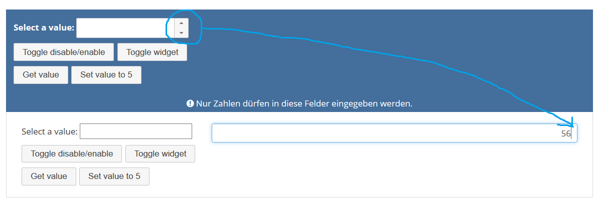 in the twig files some settings can be added, especially a minimum and maximum can be set, so that the spinners cannot operate to undesired number ranges. Also a placeholder "0" at the begin can be displayed: