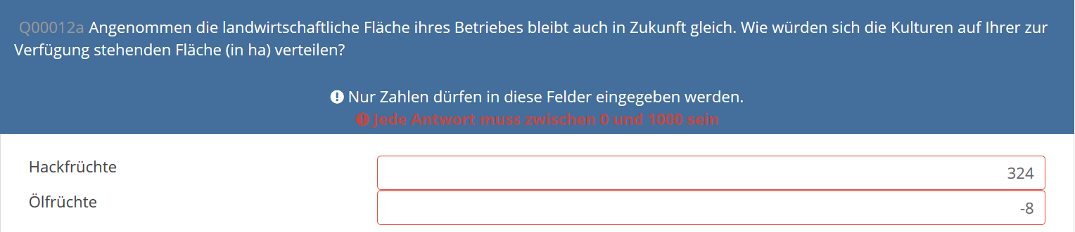 P.S.: Sorry I just want to mention another issue: When the value in the input field does not comply with the max and the min value (which can be set in the input options of the (multiple) numerical question) then the whole inputs of the input fields are made empty again. So, when the answer does not comply with the min/max, the fields are empty again (after clicking "Next"). This is not the case, when I do not insert the twig files. See screenshots.