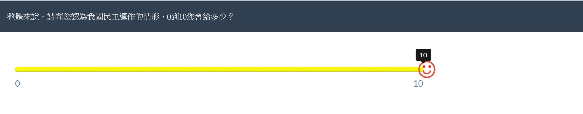 .smiley-slider-question .slider .slider-handle { background-color: #FFFFFF !important; } .smiley-slider-question .slider.slider-reset .slider-handle, .smiley-slider-question .slider.slider-untouched .slider-handle { opacity: .5; } .smiley-slider-question .slider-handle::before { font-family: FontAwesome; line-height: 24px; font-size: 28px; margin-left: -2px; } .smiley-slider-question .slider-handle[aria-valuenow="1"]::before, .smiley-slider-question .slider-handle[aria-valuenow="2"]::before, .smiley-slider-question .slider-handle[aria-valuenow="3"]::before { content: '\f119'; color: red; } .smiley-slider-question .slider-handle[aria-valuenow="4"]::before, .smiley-slider-question .slider-handle[aria-valuenow="5"]::before, .smiley-slider-question .slider-handle[aria-valuenow="6"]::before, .smiley-slider-question .slider-handle[aria-valuenow="7"]::before { content: '\f11a'; color: orange; } .smiley-slider-question .slider-handle[aria-valuenow="8"]::before, .smiley-slider-question .slider-handle[aria-valuenow="9"]::before, .smiley-slider-question .slider-handle[aria-valuenow="10"]::before { content: '\f118'; color: green; }