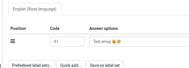 For example, my imported txt contains a grinning Emoji. I saved the txt encoded survey to be imported as UTF-8. Everything works after the import process, except for the emoji which is displayed as ????.