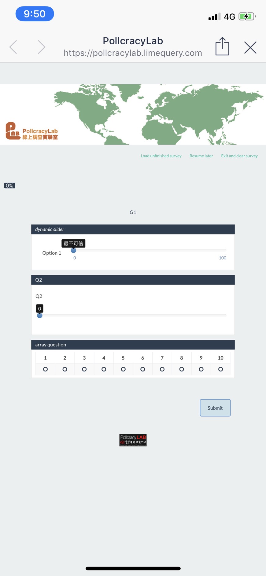in version 2.50, the array question will be convert to like dropdown question, and dynamic slider question is easily to slide.