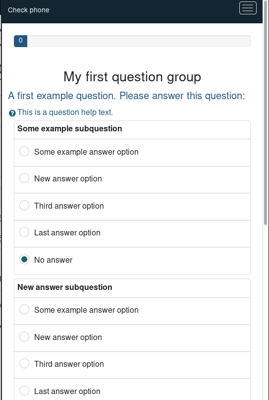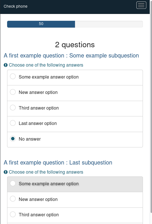 It's exactly whith array can be great : it take less surface on phone than 2 different questionstammo wrote: that is exactly why array is not needed, you can also solve it with single choice questions. And those look the same on mobile and on table/laptop screen.