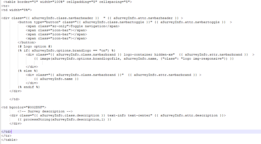 that was the trick. So I've created a table with two columns, changed their sizes and bgcolors and placed the " <!-- Survey description -->" part and the logo section into the cells.