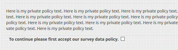 Nachricht für Umfragedatensicherheitsrichtlinie Field: same result. see below screenshot: