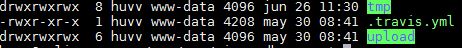 The server is an Ubuntu 18.04, and the directory permissions for /tmp and /upload are set to 777.
