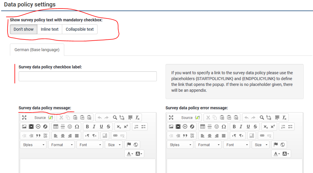 I don't understand why this message doesn't appear under 'Survey text elements' so that it can be easily changed and match the font of the other text elements. Surely this would make sense and would be easy enough to do or is there some legal reason why it is not easily edited?
