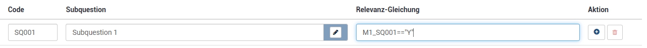 None of the following inputs into the relevance field for the array question 411 sub-question SQ06 produces any effect: