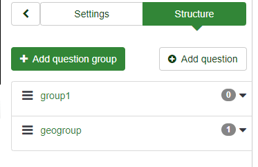 And when looking into the structure tab I see that there are two groups, only one contains a question.
