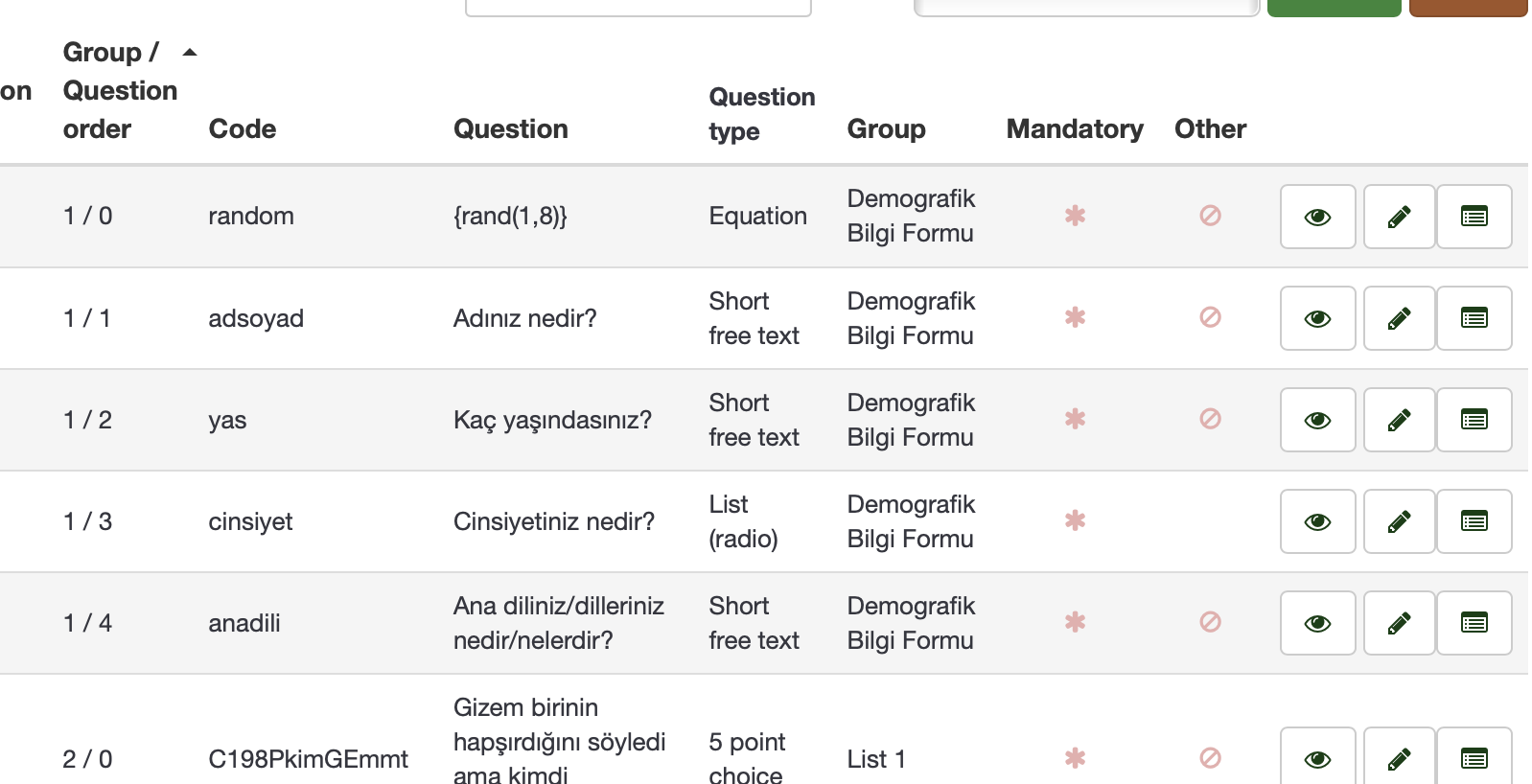 Something like this may be of interest, when the group is showed to all male respondents, and within the group some questions are only displayed to old respondents, other to young respondents.