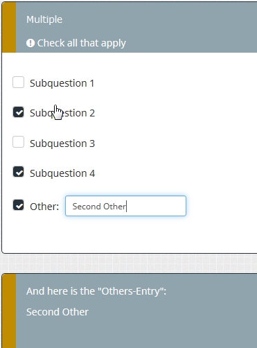 So, whereever you want to display it, just enter {Q1_other} and you get