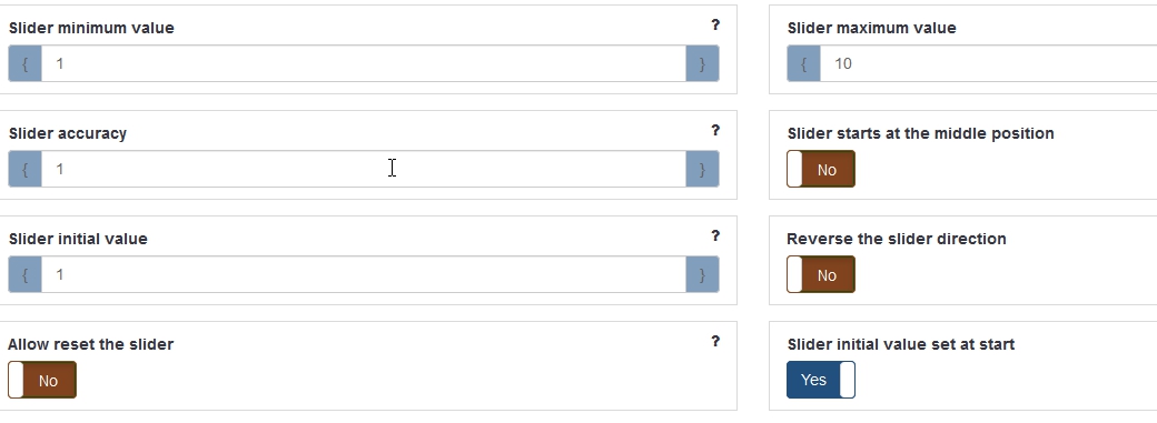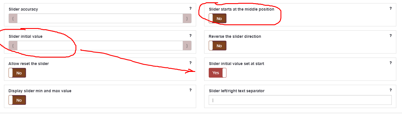 i tried to use the Default numerical input with sliders. The Default Value shown is always 5, no matter what i do. The Reset Button is working and sets the slider to the position i wish but the default value when starting with the question is 5. is there a reason for this? where can i search?