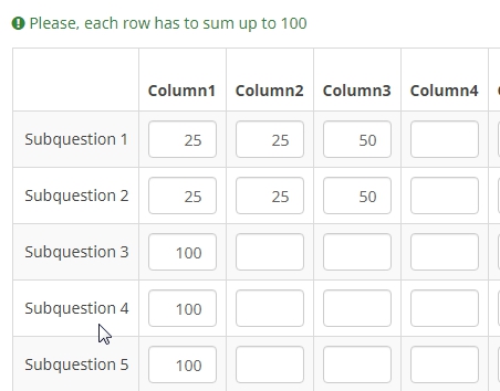 Here you seem to sum up the values of one subquestion. Before you summed up one column.