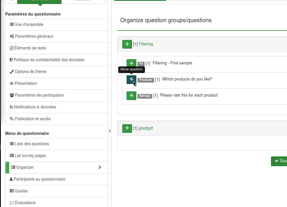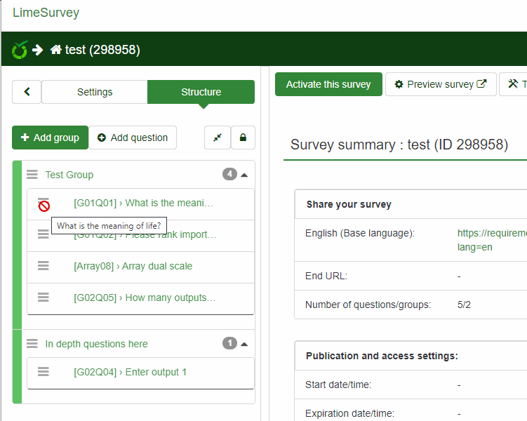 It's NEVER possible to reorder if survey is activated.mikelottridge wrote: I noticed it's not possible to reorder in 4.x even after the survey is activated. I see the "blocked" symbol whenever I try to move a question