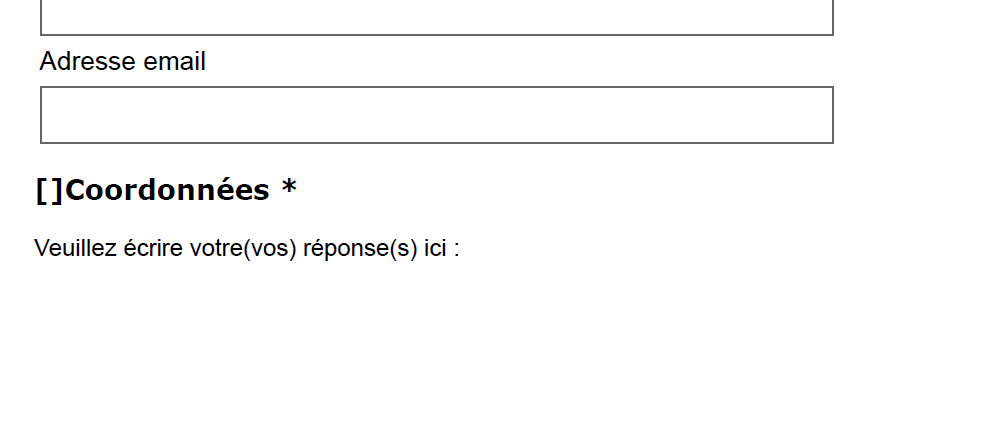 However, that question ID with number 2002 does not exist and consequently does not appear in my list of questions. So it's hard to make any 'changes' since the section does not exist to begin with. Strangely, when exporting the survey to a printable pdf, at the end of the survey there also unintentionally appears a section called "Coordonnées" with no further fields (see second screenshot).