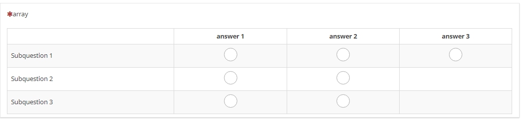 I chose the default question table options from limesurvey