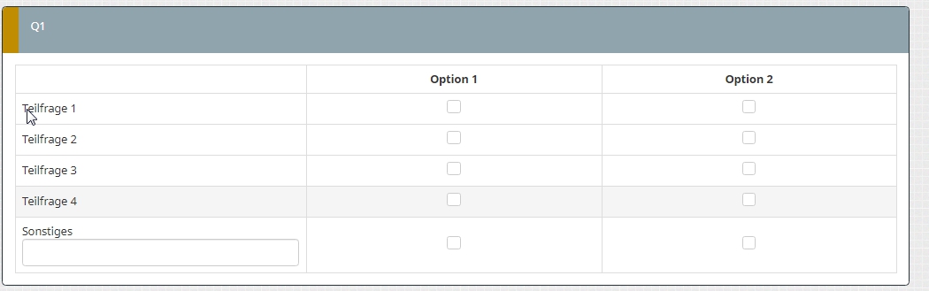 I would like to design a matrix (taken as matrix with numbers - checkboxes) with a textfield in the last line so people can add their own option. It should look like this:
