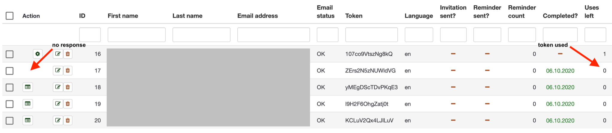 We are running version 3.23.6 of LimeSurvey and have a token based study where a "test" response which I filled out myself is missing from the results table. We even got an (empty) confirmation mail that a new response has been submitted and in the participant table the token is flagged as having been used, but the response is not there. I attach a few screenshots.