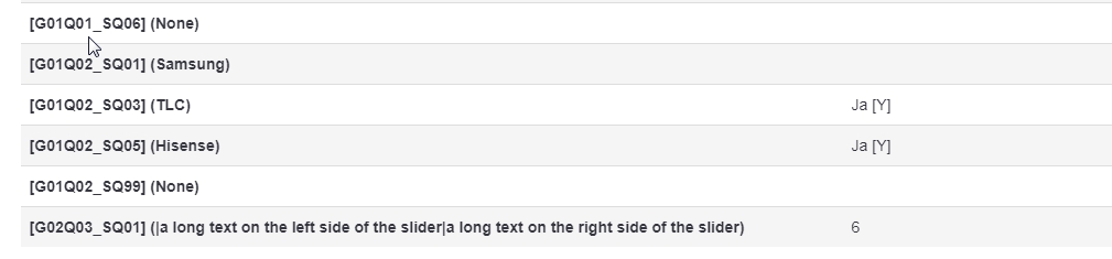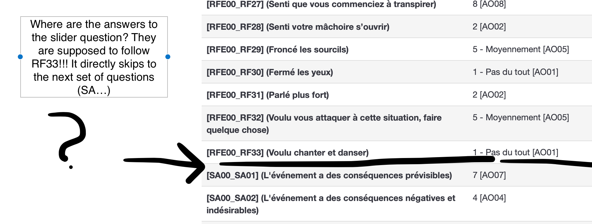 When I complete the survey, and check the responses, all are reported except the answers to the slider questions (Screenshots 4).