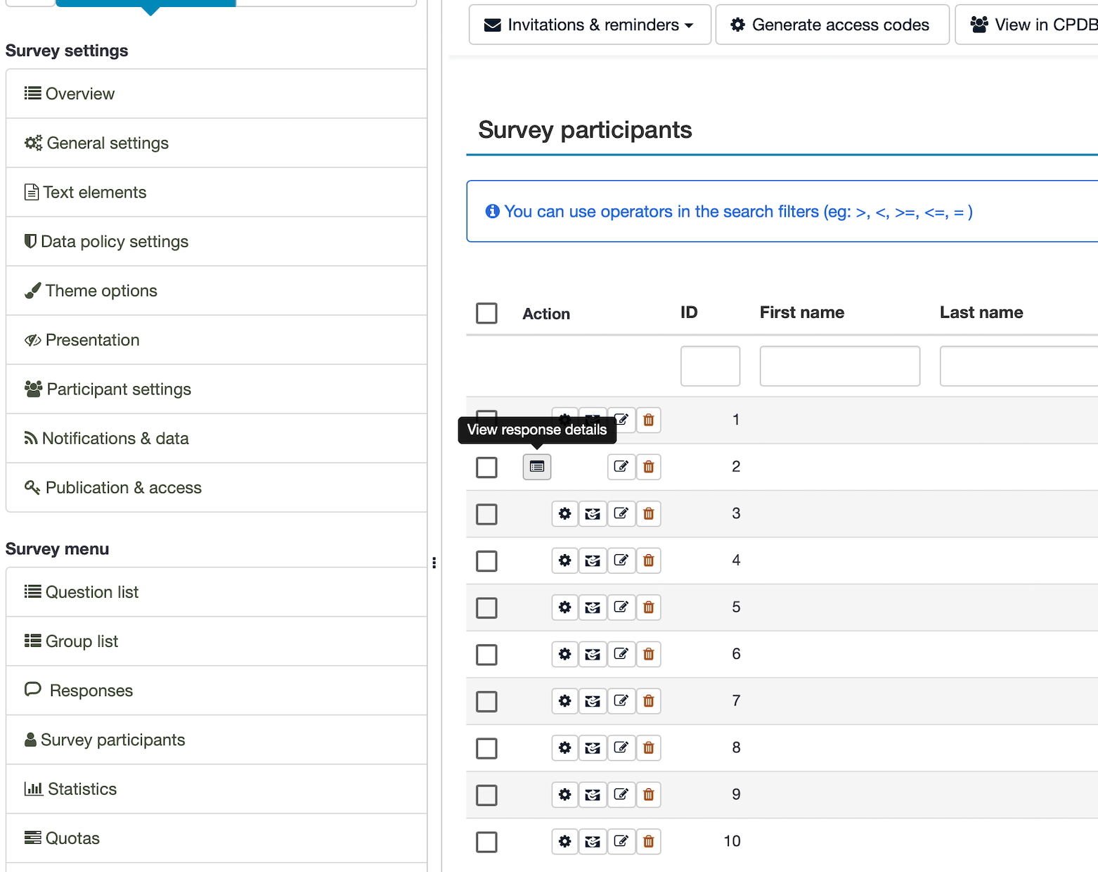 To test if the questions are presented to participants correctly, I inserted my email among the participants as a mock participant.