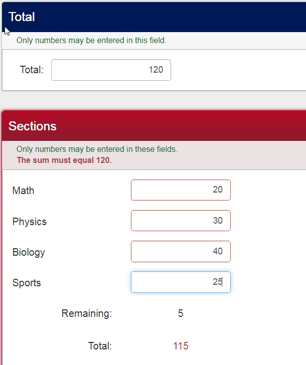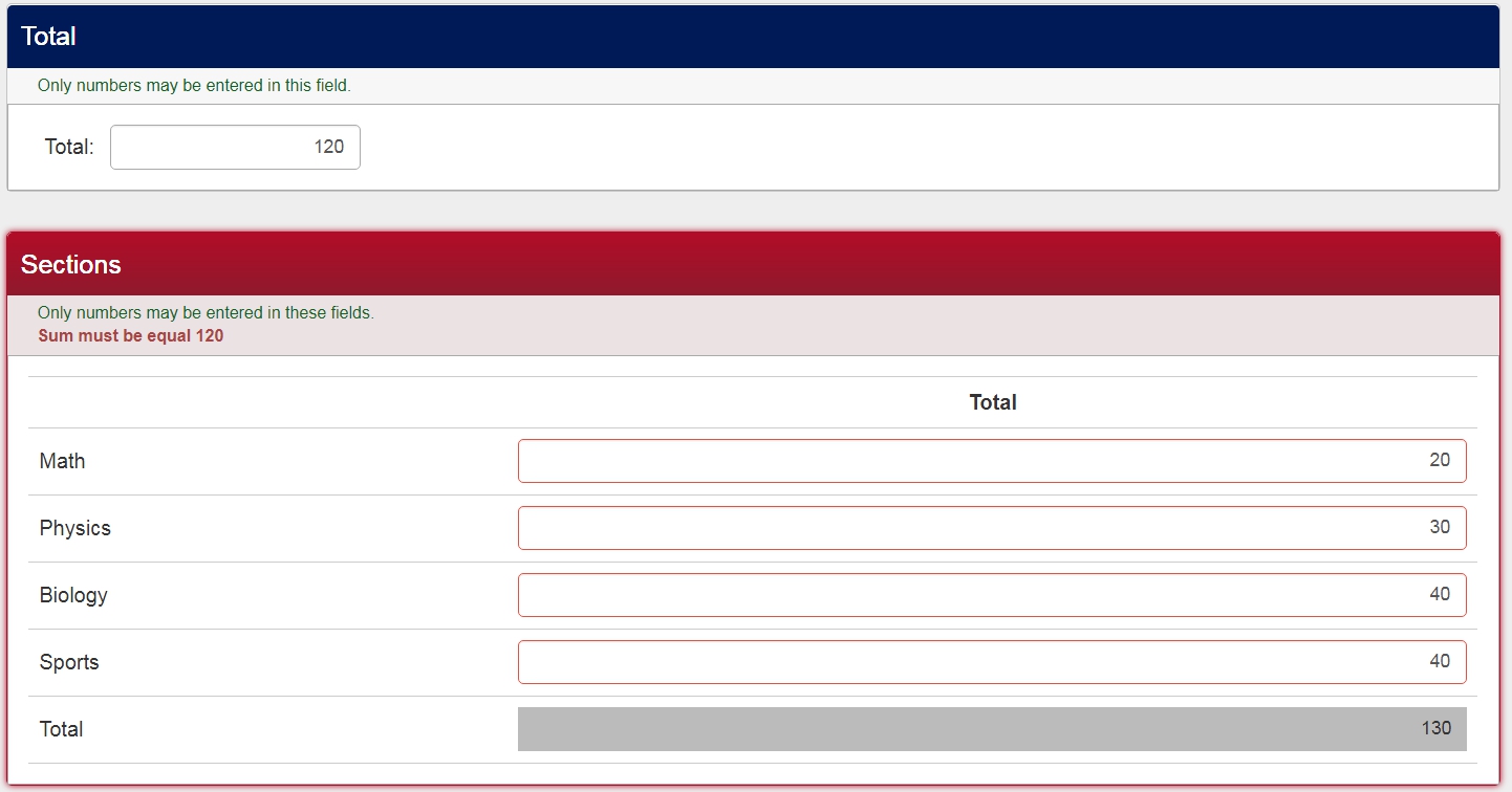 I would like to make it impossible to validate the question if the total is not equal to the response of the last question.