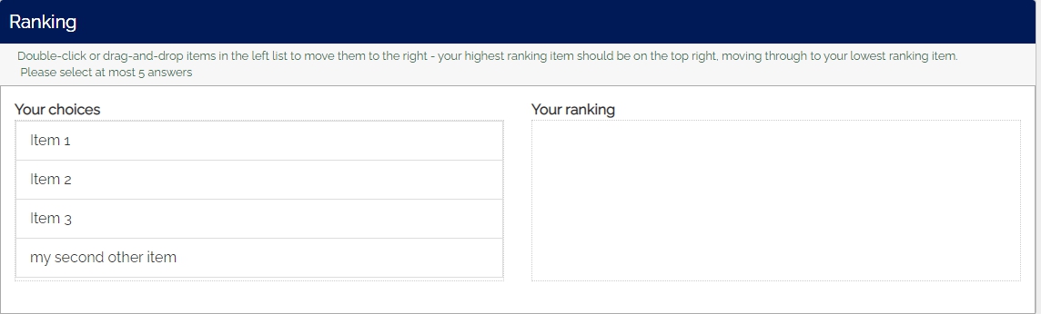 (4) Goal of this questions is to have a top 5 ranking of all questions and respondent's values (from (2)) that have been prior assessed with