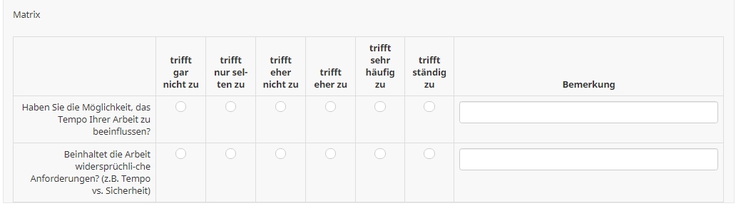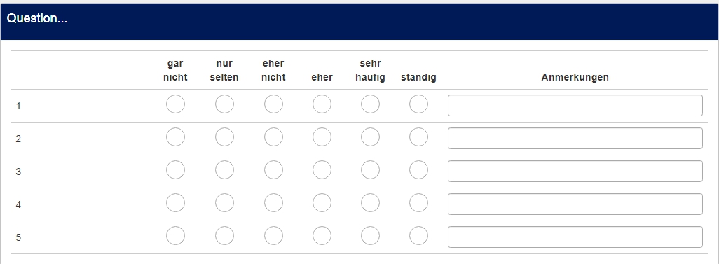<style type="text/css">.custom-array table.subquestion-list col { width: auto !important; } .custom-array table.subquestion-list thead .column-0 { width: 20%; } .custom-array table.subquestion-list thead .column-1 { width: 7%; } .custom-array table.subquestion-list thead .column-2 { width: 7%; } .custom-array table.subquestion-list thead .column-3 { width: 7%; } .custom-array table.subquestion-list thead .column-4 { width: 7%; } .custom-array table.subquestion-list thead .column-5 { width: 7%; } .custom-array table.subquestion-list thead .column-6 { width: 7%; } .custom-array table.subquestion-list thead .column-7 { width: 38%; } </style>