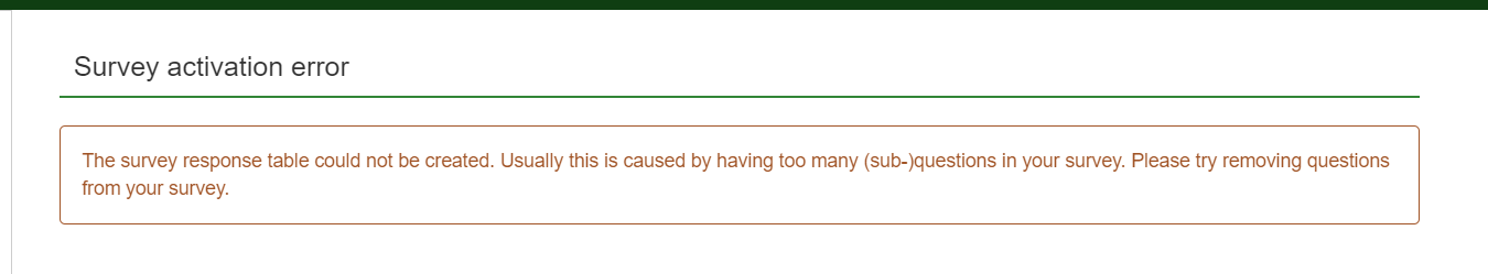 Hello, I have a question about the activate the questionnaire. I try to activate this survey, but not successful, the exact problem is attached to the following picture. All of the questions are i need, is there some way to solve it?