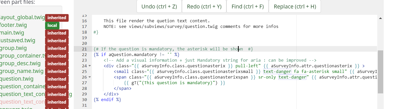<style type="text/css" data-author="Tony Partner"> #question{QID} .question-valid-container .ls-question-mandatory:nth-child(2) { display: none !important; } </style>
