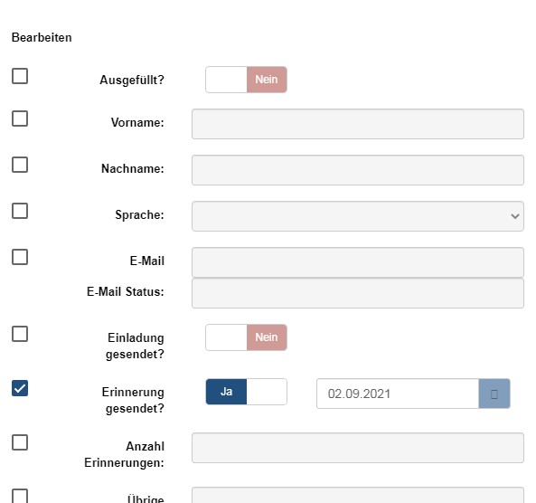 could someone explain the behaviour that when I edit a survey particpant and set the 'reminder sent' to yes, the option 'filled out' is automatically set to yes and I can no longer edit the participant. Even trying to manually set the option 'filled out' to no is not possible as long as the 'reminder sent' option ist switched to yes.