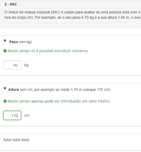 And when I refresh the page the "peso" and "altura" questions are set back to their initial values -> empty, and the equation is not shown.