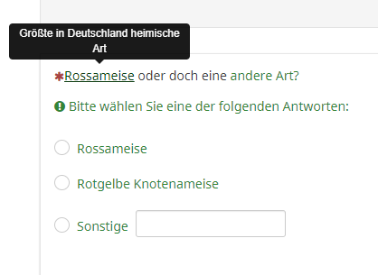 Is it possible to add a (?or !) they can click to show them the definition? It is like the function shown on the right side of the LimeSurvey Website(the following two pictures 3.jpg and 4.jpg are screenshots from LimeSurvey). I would like to use this way in my public survey. For example, I like cola[!/?]. When the respondent moves the arrow to [!/?], they can know the definition of the cola.