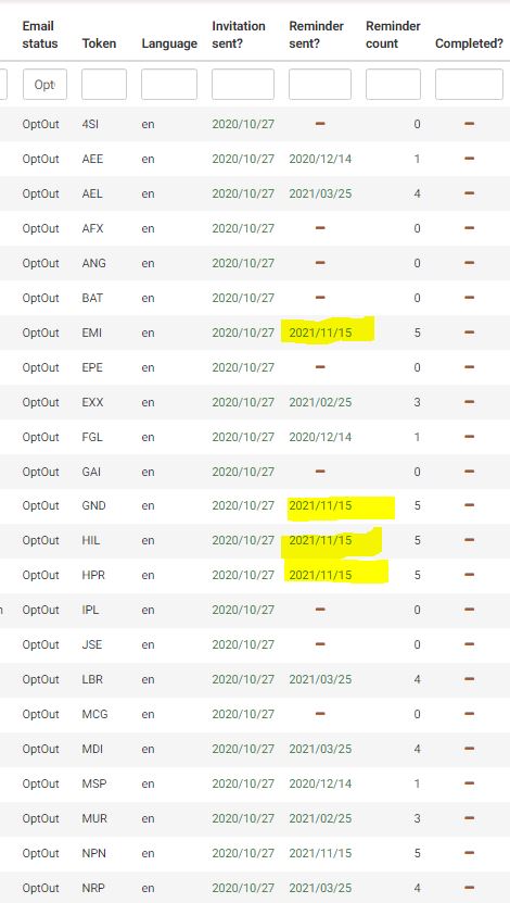 Due to a low response rate, I sent multiple reminders. Some OptedOut from the invitation and some from the 1st and 2nd reminders. From the screenshot, it almost looks like LimeSurvey are ignoring the OptOut from the 3rd and subsequent automated reminders.