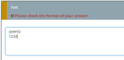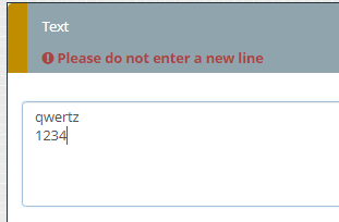 It works in the sense that the error message "Please check the format of your answer." appears when I press enter in the field, but this message does not disappear when I remove the newline. I tried something similar with another character (not newline) and the same thing happens: the error message does not disappear after the unwanted character is deleted./^.*$/
