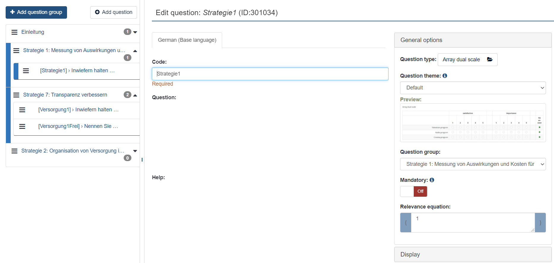 Please help us help you and fill where relevant: Your LimeSurvey version: 3.27.34+220132 Own server or LimeSurvey hosting: own