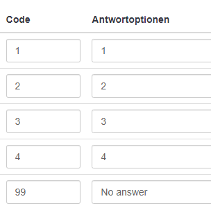 Even empty code … or any caracter code … unsure it's not an issue here …In 5.x, you can use negative values as answer codes.