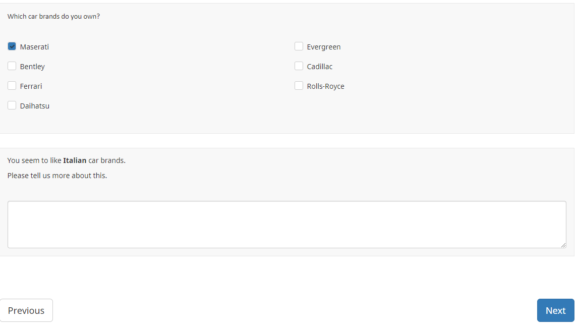 let's say the first and the third answer option make the next question appear.