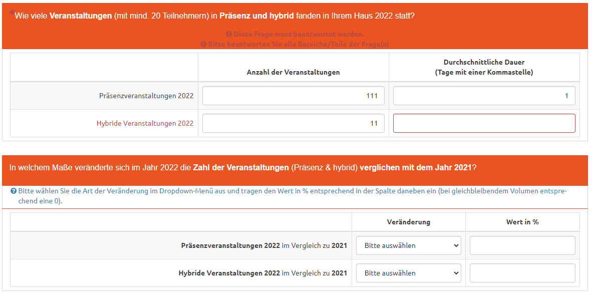 <script type="text/javascript" charset="utf-8"> $(document).on('ready pjax:scriptcomplete',function(){ var thisQuestion = $('#question{QID}'); // Insert selects $('.answer-item.answer_cell_change', thisQuestion).addClass('with-select').append('<select class="inserted-select form-control list-question-select">\ <option value="" selected>Bitte auswählen</option>\ <option value="1">Zunahme um</option>\ <option value="0">Gleichbleibend</option>\ <option value="2">Abnahme um</option>\ </select>'); // Listeners $('.inserted-select', thisQuestion).on('change', function(i) { if($(this).val() != '') { $(this).closest('.answer-item').find('input:text').val($('option:selected', this).val()).trigger('change'); } else { $(this).closest('.answer-item').find('input:text').val('').trigger('change'); } }); // Returning to page $('.with-select input:text', thisQuestion).each(function(i) { var thisCell = $(this).closest('.answer-item'); var inputText = $.trim($(this).val()); $('select.inserted-select', thisCell).val(inputText); }); // Listener on column 2 inputs $('.answer-item.answer_cell_change input:text', thisQuestion).on('keyup change', function(e) { var thisValue = $.trim($(this).val()); // Numerics only if($.isNumeric(thisValue) === false) { // Strip out non-numerics characters newValue = thisValue.replace(/\D/g,''); $(this).val(newValue).trigger('change'); } // Max/min values var maxAllowed = 100; var minAllowed = 0; if (thisValue > maxAllowed) { alert('The maximum allowed is '+maxAllowed+'.'); $(this).val(maxAllowed); } else if (thisValue < minAllowed) { alert('The minimum allowed is '+minAllowed+'.'); $(this).val(minAllowed); } }); // Clean-up styles $('select.inserted-select', thisQuestion).css({ 'max-width': '100%' }); $('.with-select input:text', thisQuestion).css({ 'position': 'absolute', 'left': '-9999em' }); }); </script> And this is how it looks like when it is duplicated: [attachment=31896]lime.jpg[/attachment] Can somebody help me to prevent the field from duplicating (or triplicating when you send it again without mandatory data)? Thanks in advance, Ralf