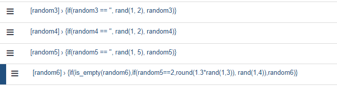 {if(is_empty(random6),if(random5==2,round(1.3*rand(1,3)), rand(1,4)),random6)}