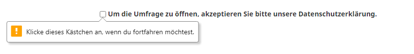 On the data protection page, if a user clicks “continue” but does not agree to the terms, they are shown a popup that in English that reads “Please tick this box if you want to proceed”. If possible, I would like to edit this text and translate to a different language, however after looking through the CSS / JS in the templets theme I was unable to find where this text is being generated.