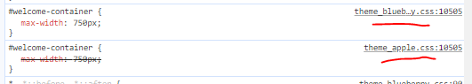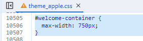 Weirdly, this only works for Apple, not with the other design CSS, like theme_blueberry.css. Do you know why?In "theme.apple.css" the welcome container has a max-width of only 750 px.