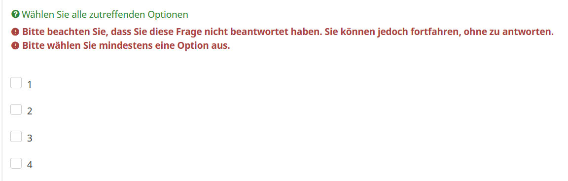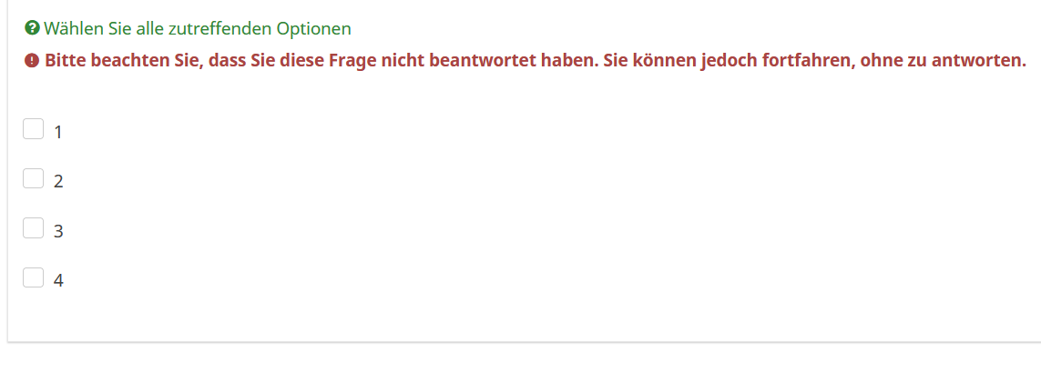 Hello, I want to implement a feature that enhances the user experience. Specifically, I want to create a warning message that activates when participants click the "Next" button to proceed to the following page. This message should alert them if they haven't answered all the questions on the current page, asking for confirmation if they wish to continue despite unanswered questions. I aim to ensure missing questions are due to a conscious decision rather than oversight without enforcing mandatory responses. Could you provide guidance or suggestions on how to implement this warning mechanism in a user-friendly manner effectively?