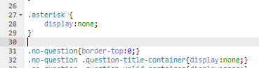 /****************** User custom CSS --------------- In this file you can add your own custom CSS It will be loaded last, so you can override any other property. Also, it will never be updated. So if you inheritate a core template and just add here some CSS, you'll still benefit of all the updates */ .table-bordered > thead > tr > th { border: 1px solid #dadada; } .table-bordered > thead > tr > td { border: 1px solid #dadada; } .asterisk {display: none;}