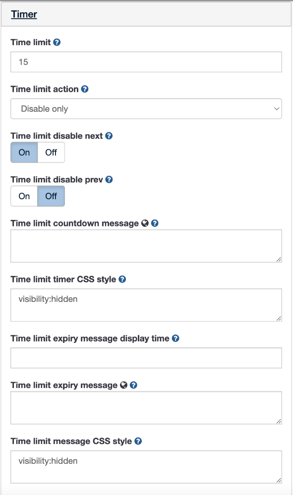 So the first two options disable the "next" button and proceed when time limit is up (with or without warning)