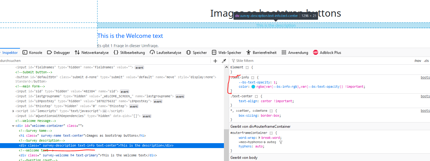 .survey-description.text-info { color: red !important; /* Whatever color you want */ }